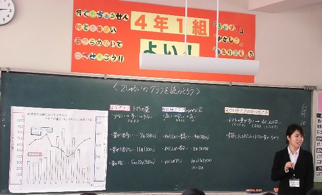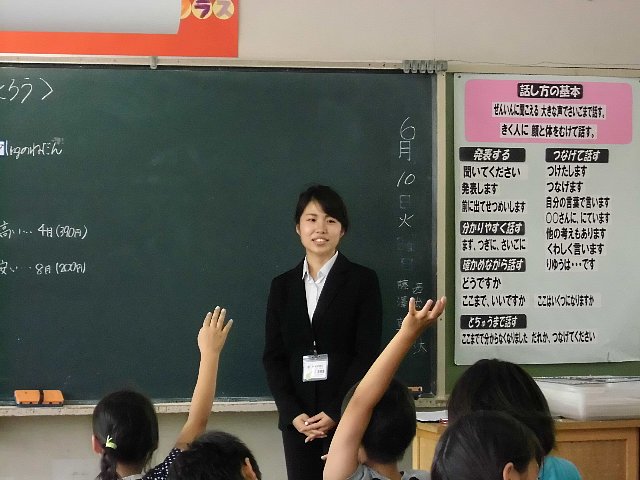 クラスの児童は担任の先生の普段の学習指導がよく行き届いているようで、午後の暑い中でしたが最後まで集中して取り組めていました。ただ、いつものように相当早口だったのがあと一歩でしたが、校長先生をはじめ知り合いの先生にも囲まれ、とてもよい実習になったと思います。大学3年生としては十分「合格」でした。あと3日、最後までしっかりやってください!