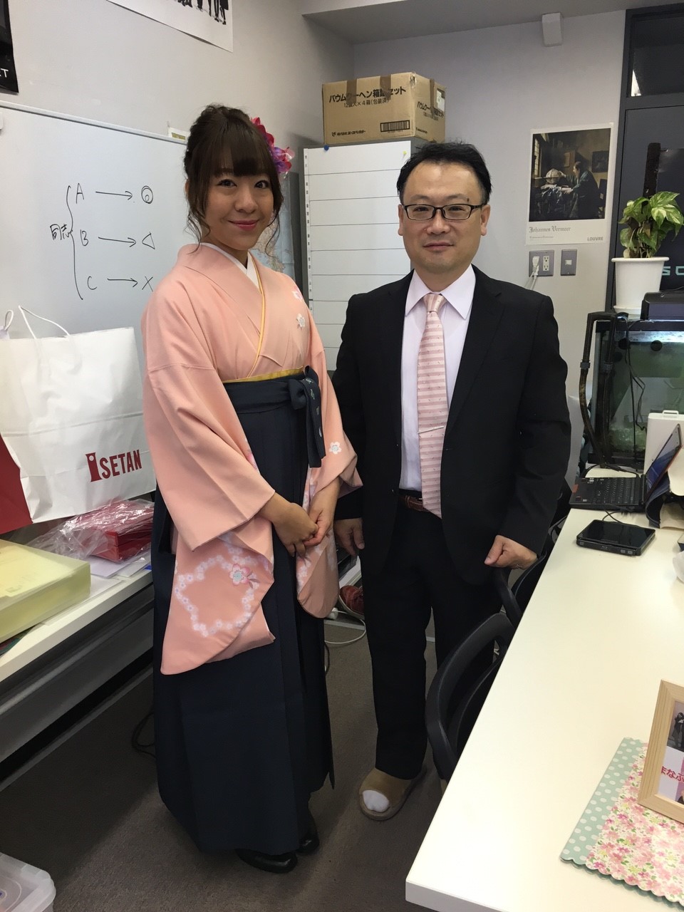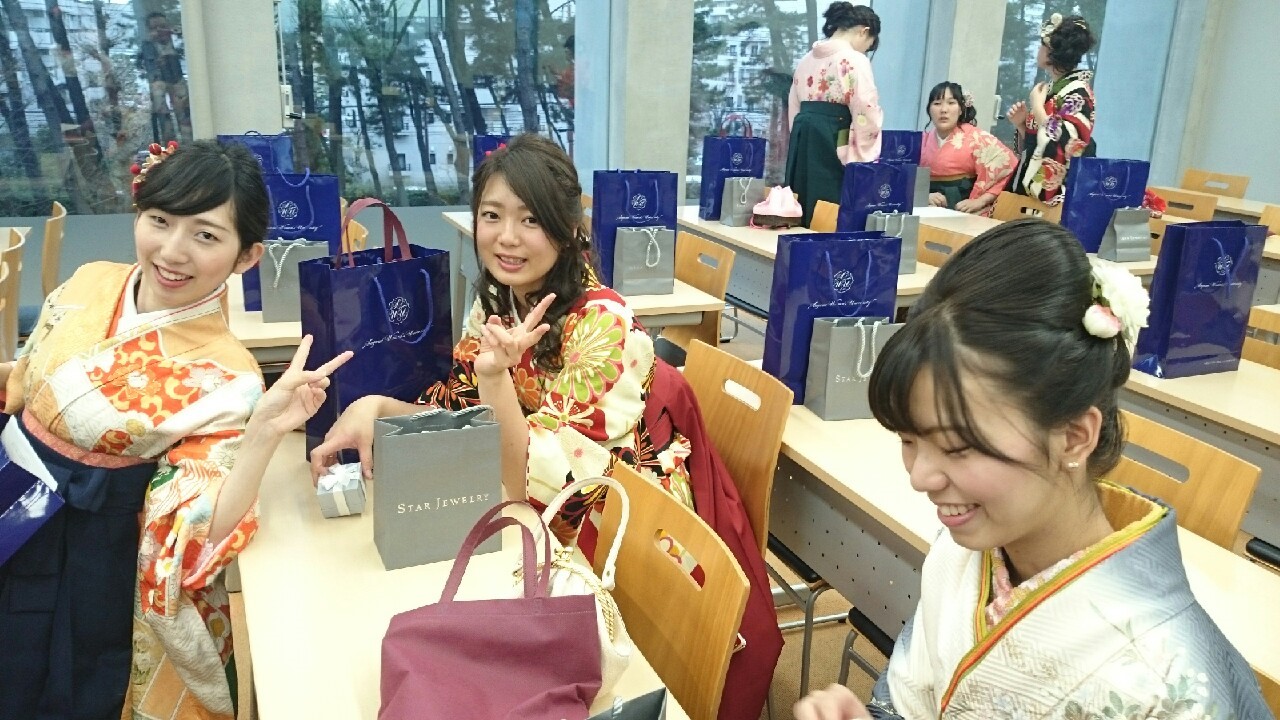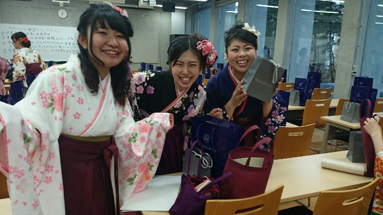 いよいよ卒業! 投稿日2016-03-102024-09-06投稿者blog03コメントをどうぞ 3月10日,いよいよ卒業式です。 入場前のグーリーンホール前でパチリ。 開式前,みんな艶やかです。 式終了後,最後の集まりです。 いよいよ卒業祝賀パーティー! いやー,小っさいですねー。(笑) 最後は全員で記念撮影です。 卒業おめでとう!!