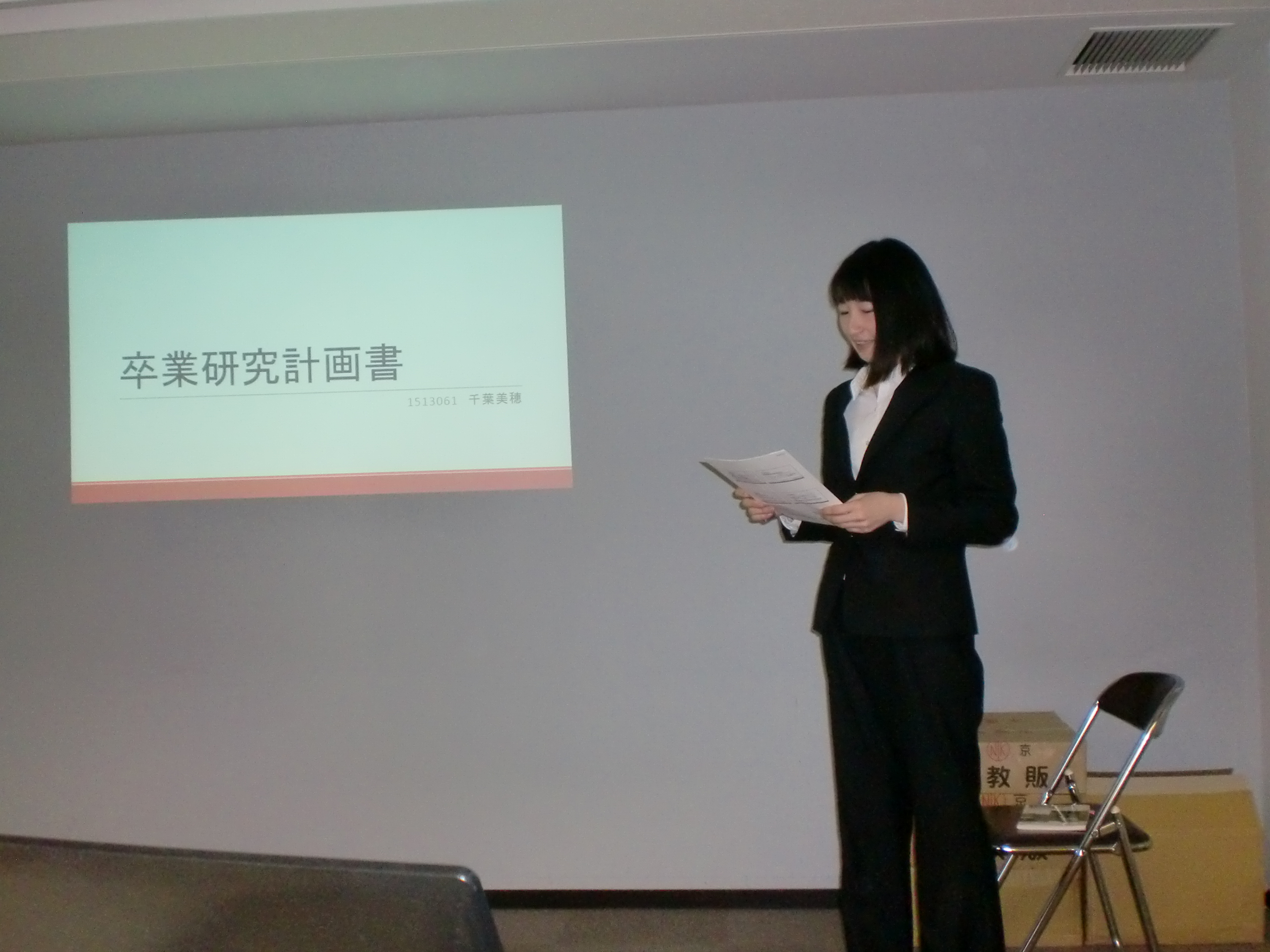 はじめは3年生4名の卒業研究計画の発表です。