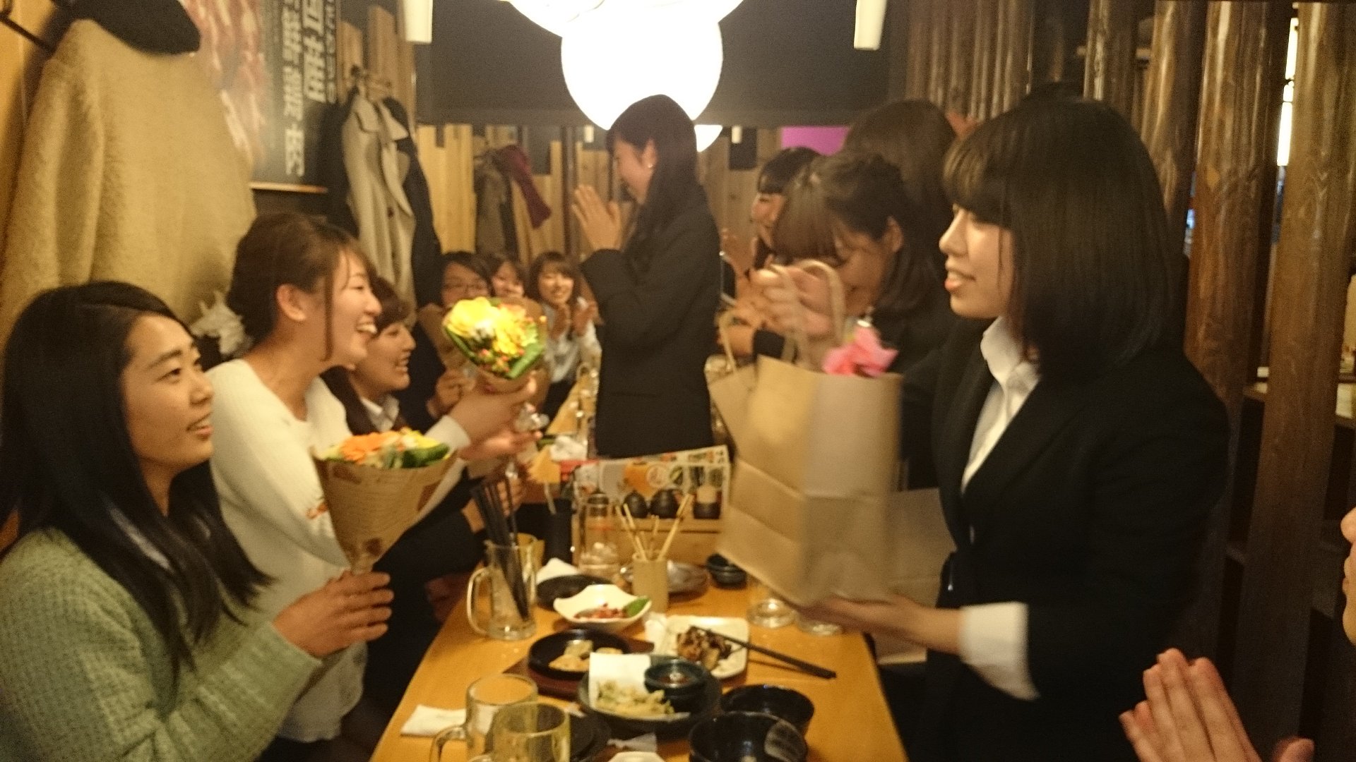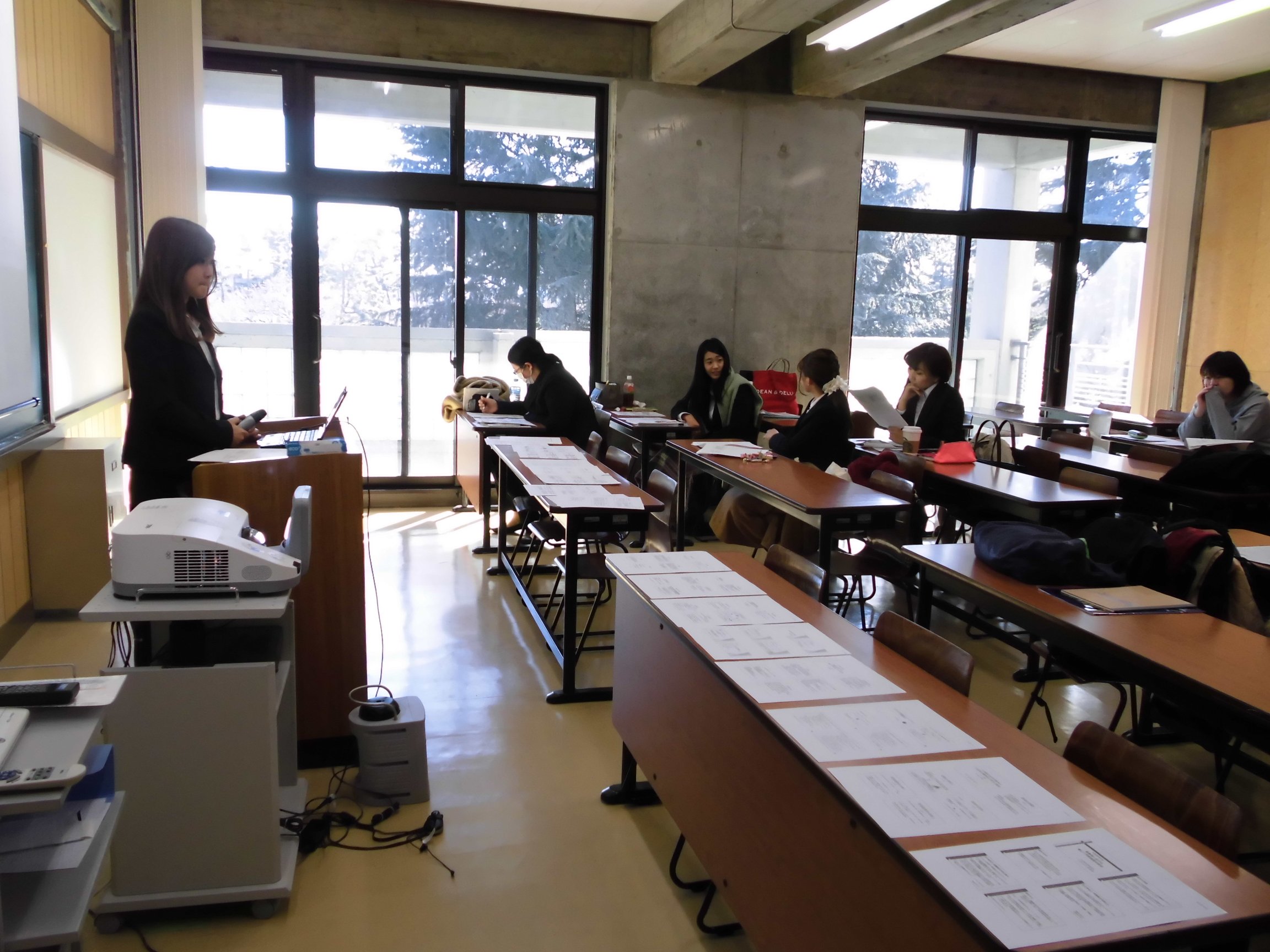 2014年度卒業研究発表会 投稿日2015-02-022024-09-06投稿者blog03コメントをどうぞ 後藤ゼミ恒例の卒業研究発表会を行いました。 今年は1週早めて1月末の実施でした。 5人の4年生がそれぞれ約2年間取り組んできた成果を発表しました。 発表会終了後は2年生もいっしょに記念撮影。 夜は打ち上げ&送別会。後輩からの記念品と花束のプレゼント。 卒業してもゼミ合宿やこういった会にはまた来てほしいです。